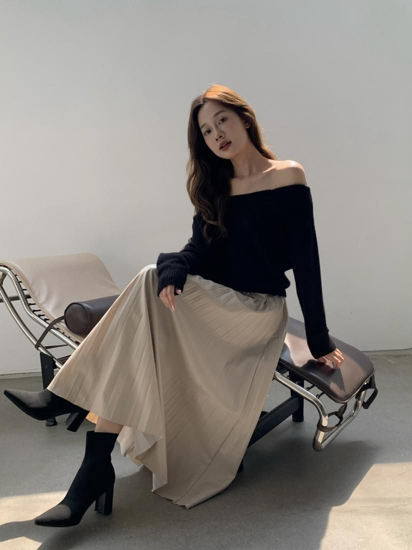 OFF SHOULDER VOLUME KNIT TOPS